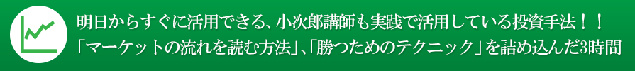 「今よりももっと安定的に勝てる投資手法を身に付けたい」と考えられている方にはピッタリの内容となっています。